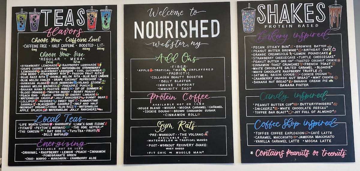 Nourished, located at 900 Holt Rd Suite 11, Webster, NY 14580, is a delightful café that exemplifies a blend of community warmth and health-conscious offerings. From the moment you step through the door, you are greeted by an inviting atmosphere characterized by a cozy interior and friendly smiles from the staff. It's not just a place to grab a quick drink but a sanctuary where you can unwind and rejuvenate.